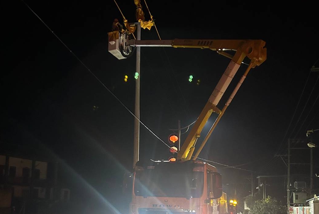 彼时夜色正浓,寒夜气温持续走低,凛冽的寒风如同利刃般刮在脸上,让人瑟瑟发抖。检修车的灯光刺破沉沉夜幕,照亮了紧张而忙碌的抢修现场。为最大限度保障群众用电需求,抢修人员严格遵守“缩小停电范围、应保尽保”原则,精准研判线路负荷分布,科学制定旁路供电方案,全力确保沿线所有用户全程保电、零停电。