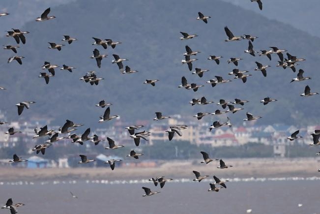 鸿雁沿海迁徙种群抵达闽江河口湿地。闽江河口湿地国家级自然保护区管理处供图