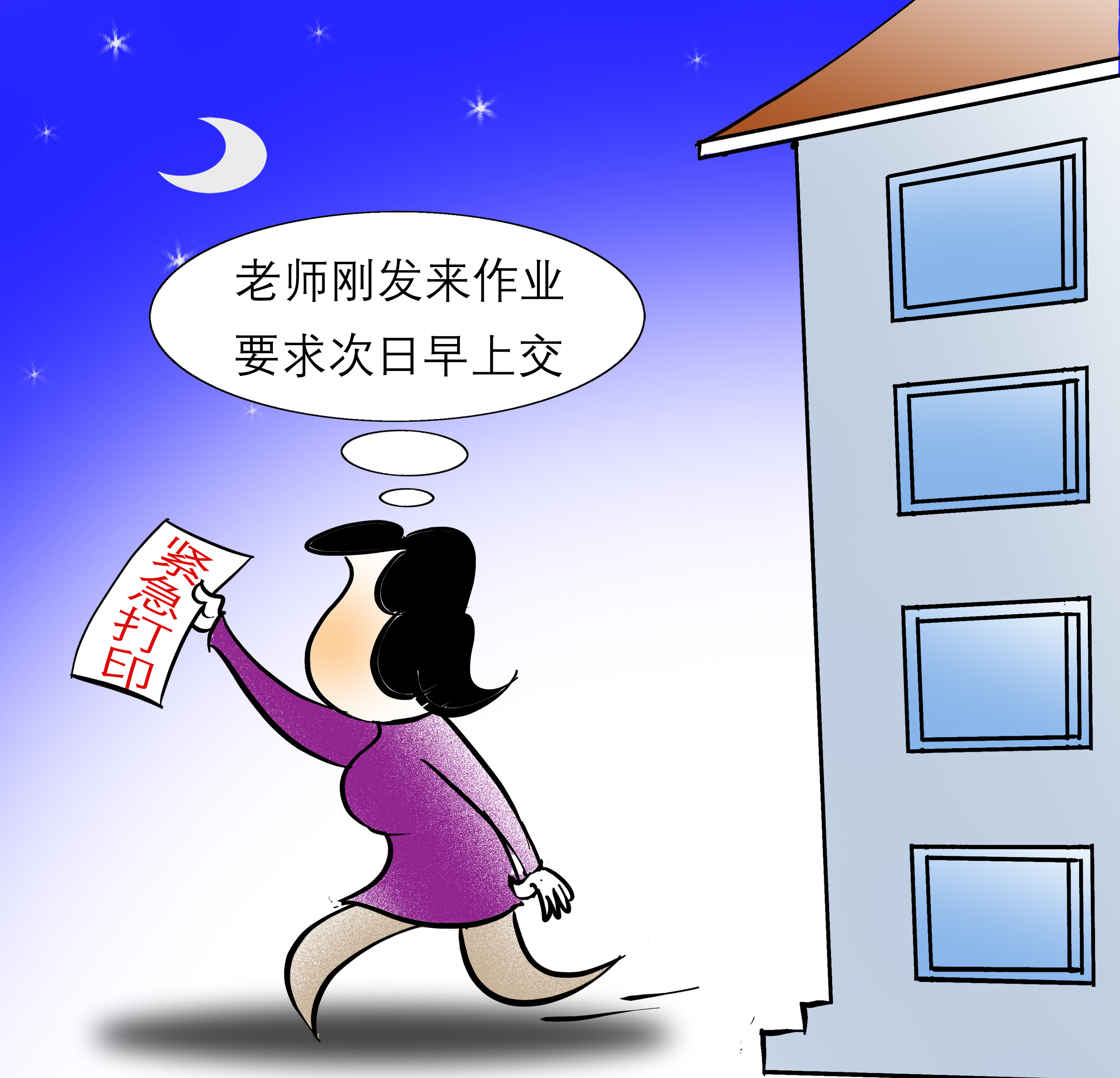 晚上,居住在山东省济南市的王女士手机响起——那是上小学四年级的孩子所在班级群有了新消息,老师发来一份需要打印的数学专项练习——两页A4纸,要求次日早上交。王女士抓起电动自行车钥匙,匆匆下楼,赶往最近的打印店。《法治日报》记者在采访中发现,不少家长和王女士一样,都有夜间“紧急打印”的经历,班级微信群中随时弹出的作业文件,成为许多家庭的常态“任务”。