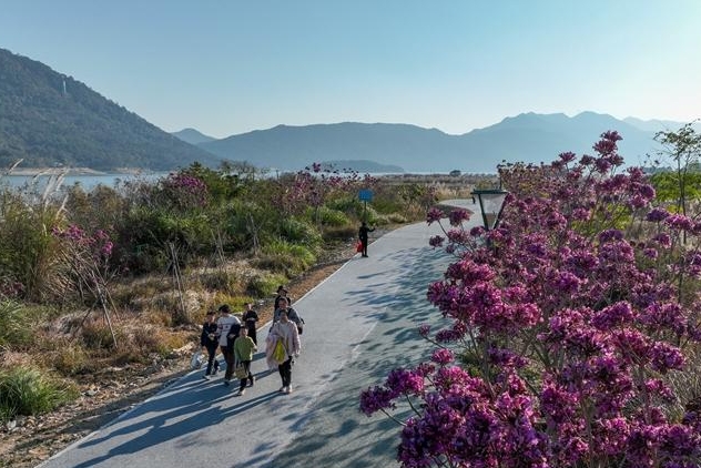 连日来,位于福清市东张水库环湖路旁的紫花风铃木迎来盛花期。成片的紫花风铃木竞相绽放,远远望去,如同铺展在湖畔的一片粉紫色海洋,蔚为壮观,为冬日增添了一抹浪漫色彩。