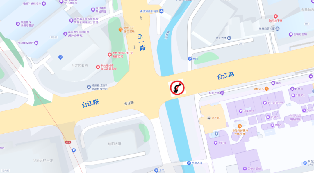 福州市公安局交通管理局关于五一路台江路口实行全天禁止机动车东往南左转的通告