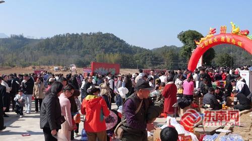 活动现场暖意融融、人头攒动,精彩的文艺表演轮番上演。市集区域则烟火气十足,各具特色的摊位整齐排列,祝中古法红糖、湖杨梅干、水仙茶、山茶油等农特产品琳琅满目,游客们纷纷驻足品尝、购买。