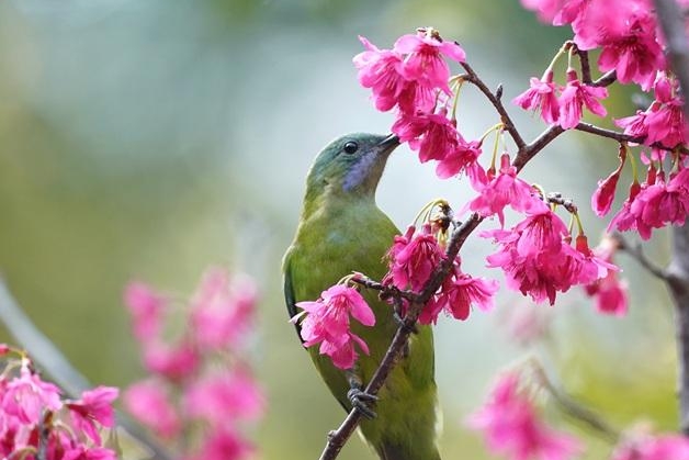 春有百花与初果的盛宴。樱花、玉兰、桃花、木棉等次第绽放,花蜜吸引了太阳鸟、绣眼鸟、鹎鸟;北迁的柳莺在花簇间化身“昆虫猎手”。枝头成熟的桂花果与蒲葵果,成为鹎鸟、椋鸟的点心。