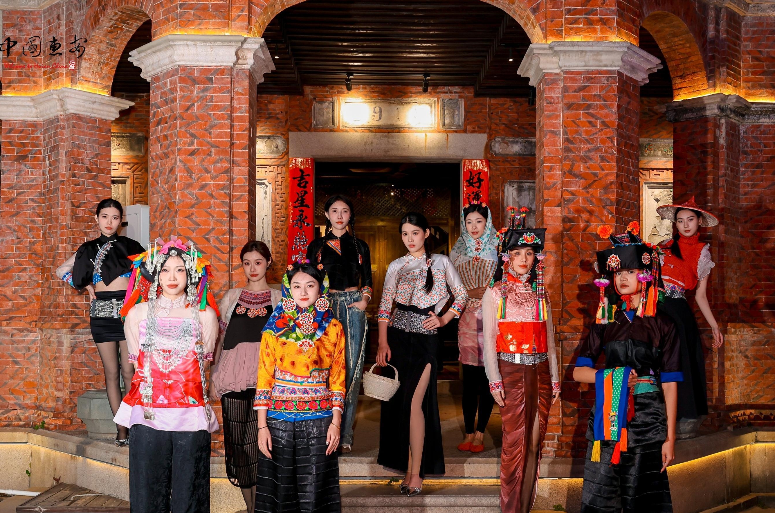 在位于泉州西街的惠安城市会客厅走秀现场,古朴的闽南古厝与现代灯光相映成趣,模特们依次展示了从早期简约朴素的劳动服饰,到融入现代设计元素的精致款式,直观呈现了惠安女服饰在保持传统特色基础上的创新与发展。其鲜明的黄、黑等色调,以及细腻的纹样设计,成为现场游客镜头聚焦的亮点。