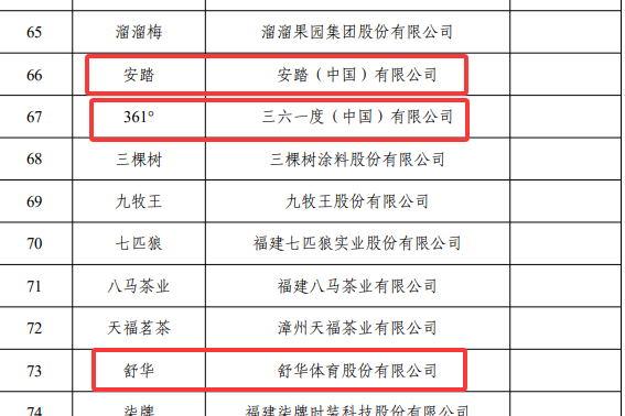 其中,企业品牌分为“历史经典”“时代优品”和“潮流新锐”三类。福建体育品牌安踏、361°、舒华均入选“时代优品”。“时代优品”注重产品竞争力,是新中国成立以来质量过硬、美誉度高,在人民群众中影响深远的优质品牌。