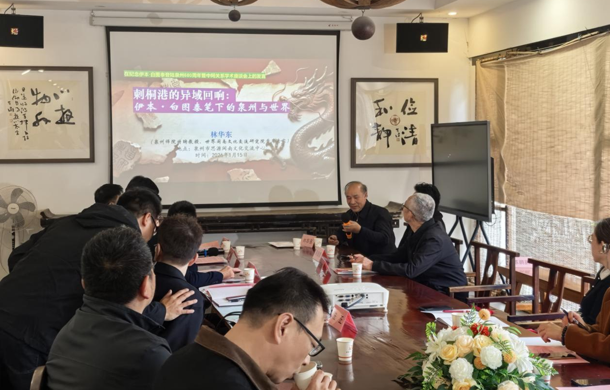 世界闽南文化交流研究院首席专家林华东教授,在座谈会开场中以《刺桐港的异域回响:伊本·白图泰笔下的泉州与世界》为题,解说伊本·白图泰眼中世界最大的泉州刺桐港,阐述了伊本·白图泰以不同视角丰富了雅各·德安科纳《光明之城》和《马可·波罗纪行》对泉州的描述,指出《伊本·白图泰游记》与汪大渊的《岛夷志略》是跨越中阿古今的共同精神遗产。