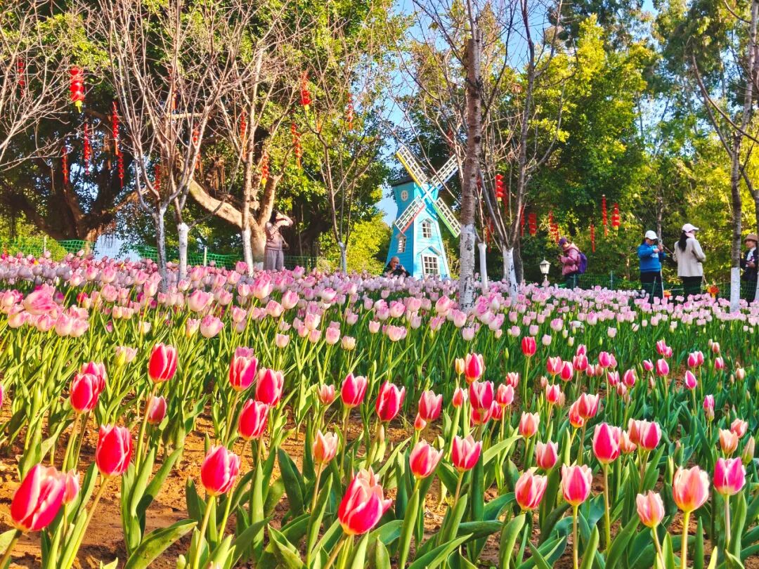 近日,福州市儿童公园清风园内,130平方米的锦绣花毯及7600余株郁金香正盛放,吸引众多市民前往打卡。
