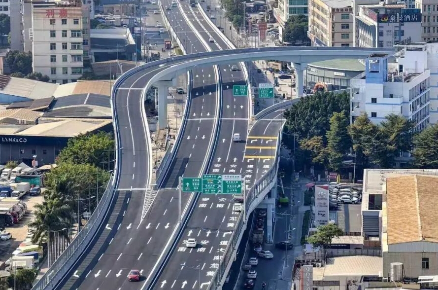 作为中心市区内部第一条真正意义上的环城快速路,泉州中环城快速路全长43.8公里,总投资30.25亿元,跨越丰泽、鲤城、晋江等区域,分为市区段和晋江段,依托老君大道、联丰大街等既有快速路,新增改造黄龙大道、池峰路、南环路等路段,最终形成中心市区闭环快速交通体系。