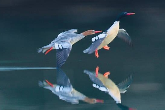 中华秋沙鸭是全球濒危物种,被列入世界自然保护联盟(IUCN)濒危物种红色名录,目前全球现存不足3000只。它们对生存环境极为挑剔,偏爱宽阔湍急、水质清澈且食物丰富的溪流与库区,是公认的“生态试纸”,其栖息轨迹直接反映区域生态质量。作为“捕猎高手”,中华秋沙鸭以小型鱼类和水生昆虫为食,每次潜水捕食可持续15至30秒。每年10月起,它们会从东北繁殖地启程,迁飞至长江流域及以南地区越冬,次年3月再踏上北归之路,而永泰大樟溪早已成为它们迁徙路线上的稳定“越冬天堂”。