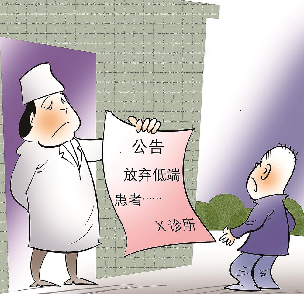 近日,网上曝出沂南一私人诊所张贴的公告,其中有“放弃低端患者”等言论。这不仅刺痛人心,更暴露出个别医疗行业从业者价值观的严重偏差。患者的经济能力、文化水平等确有差异,医疗机构固然需要考虑成本、收益,但医者仁心的职业操守不能丢弃。如此一味逐利、“看人下菜”,丧失对生命的敬畏,必将损失自身的口碑、信誉,“反误了卿卿性命”。