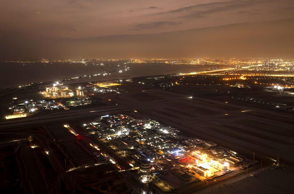 ↑ 厦门翔安国际机场项目夜景(1月20日摄,无人机照片)。