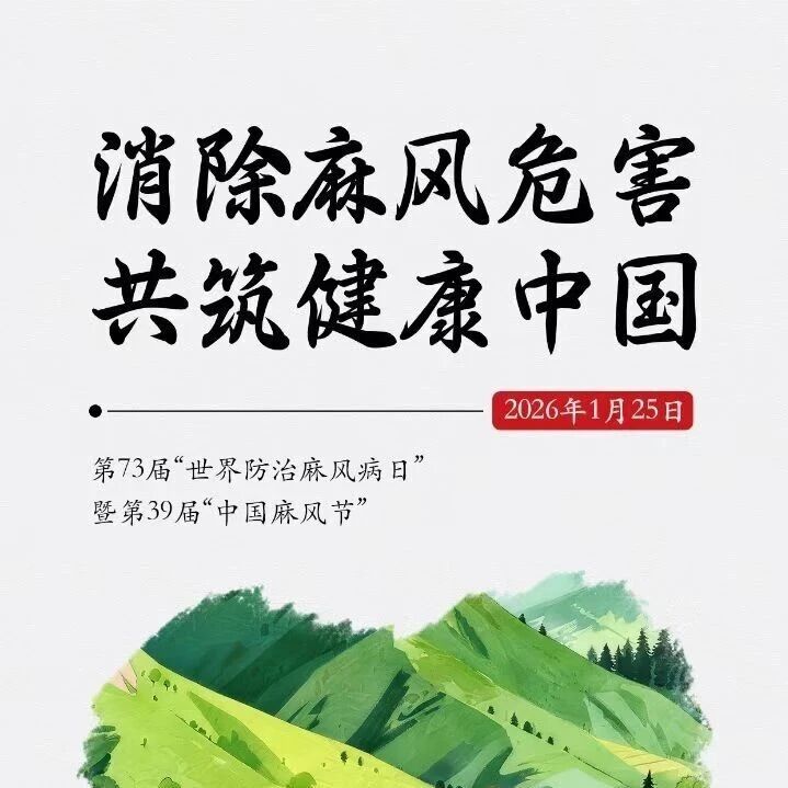 2026年1月25日是第73届“世界防治麻风病日”暨第39届“中国麻风节”,主题是“消除麻风危害,共筑健康中国”。