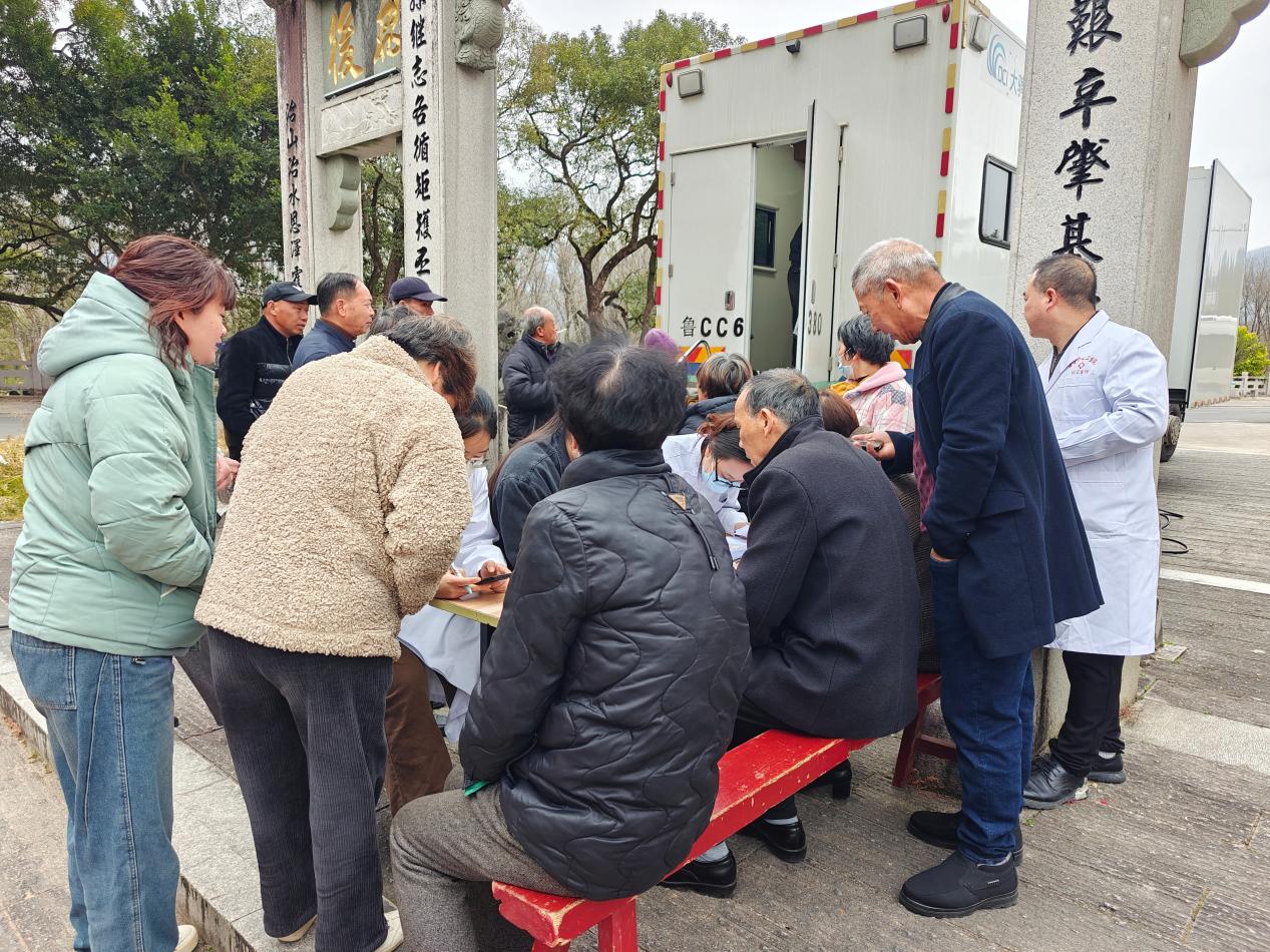 筛查现场以七八十岁的老年人为主,他们在工作人员引导下有序登记、排队,氛围温馨融洽。石桥村乡村医生黄荣量介绍说:“村里现在大多是老人和儿童,年轻人在外务工。老人进城看病不仅路远、身体吃不消,也常常怕花钱不愿去。这样的活动真是办到了群众心坎上。”71岁的黄女士检查后高兴地表示:“每年人民医院都来村里义诊,真的很方便,必须点赞!”简单的话语,道出了村民对“家门口”健康服务的认可与期待。