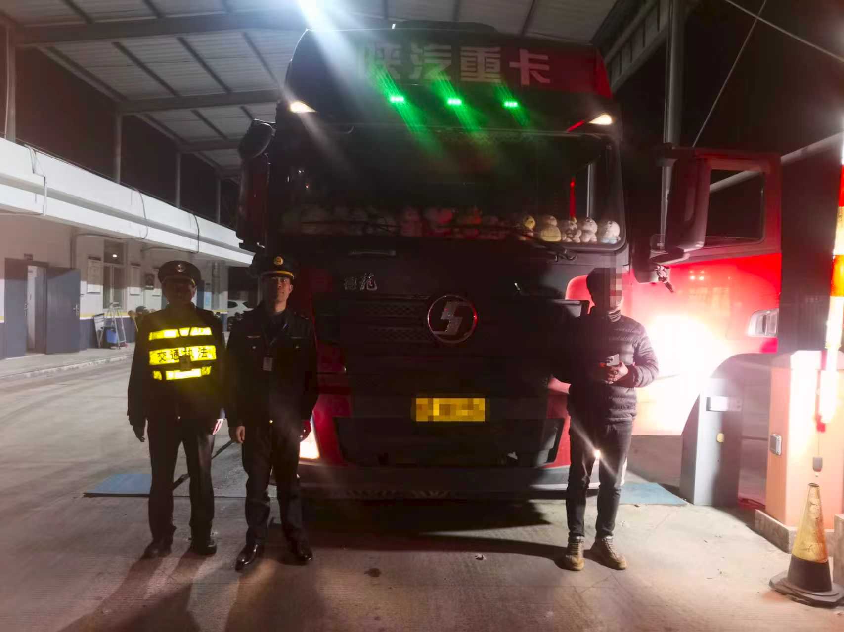 为维护夜间道路交通运输秩序,近期,诏安县交通执法大队持续开展夜间执法,重点整治货运车辆超限超载,严厉打击“百吨王”和“超限100%”严重违法超限运输行为,防范交通重大事故,营造安全稳定的夜间道路运输环境。