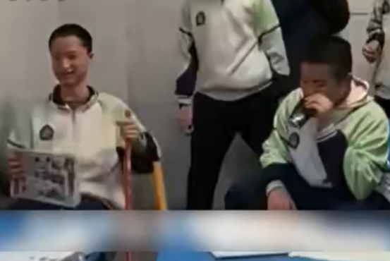 福州十九中学生用易拉罐模仿发动机轰鸣。