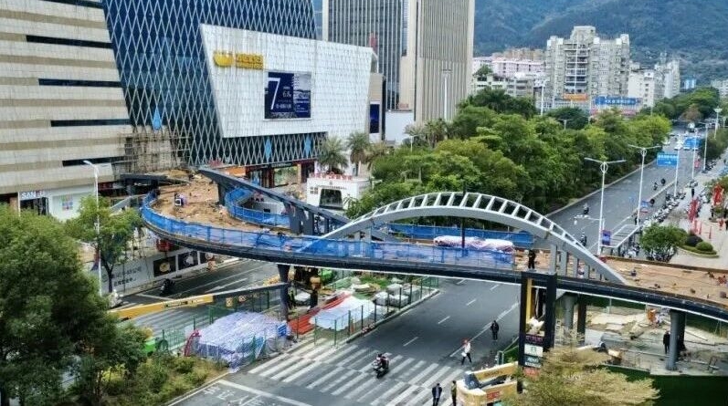 建成后,将连接万达广场与宝信商业区域,跨越交通繁忙的天湖路,重点解决人车争道问题,提升行人过街安全性和区域通行效率,惠及居民出行。届时,该区域也将成为一个集实用功能与城市景观于一体的城市新地标。