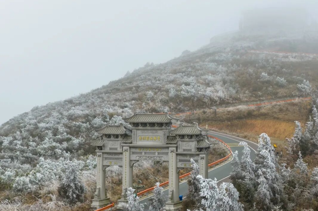 整座山峦已化作冰雪童话世界——