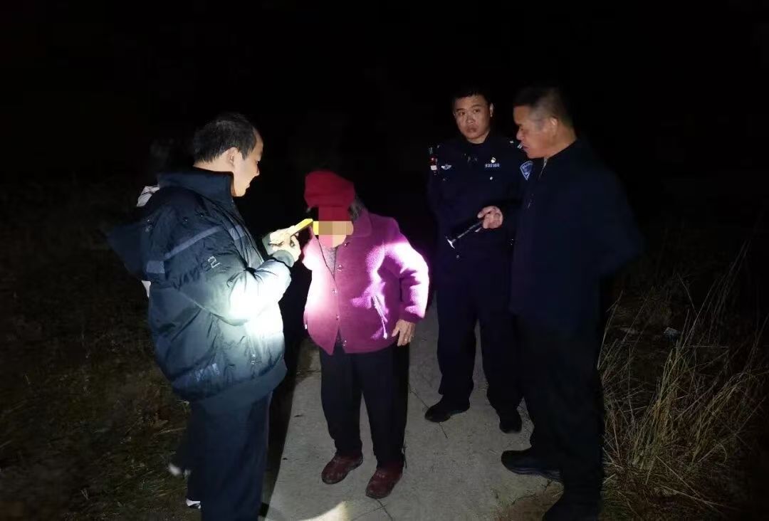 冬日的寒夜里,民警手中电筒的光束划破黑暗与大家此起彼伏的呼喊声交织成网。泥泞湿滑的小路上,搜寻队伍的脚步声急促而坚定,经过两个多小时持续搜寻,终于在歧滩村庄坑里附近找到老人,民警确认老人身体无碍后,众人小心搀扶将其安全护送回家。