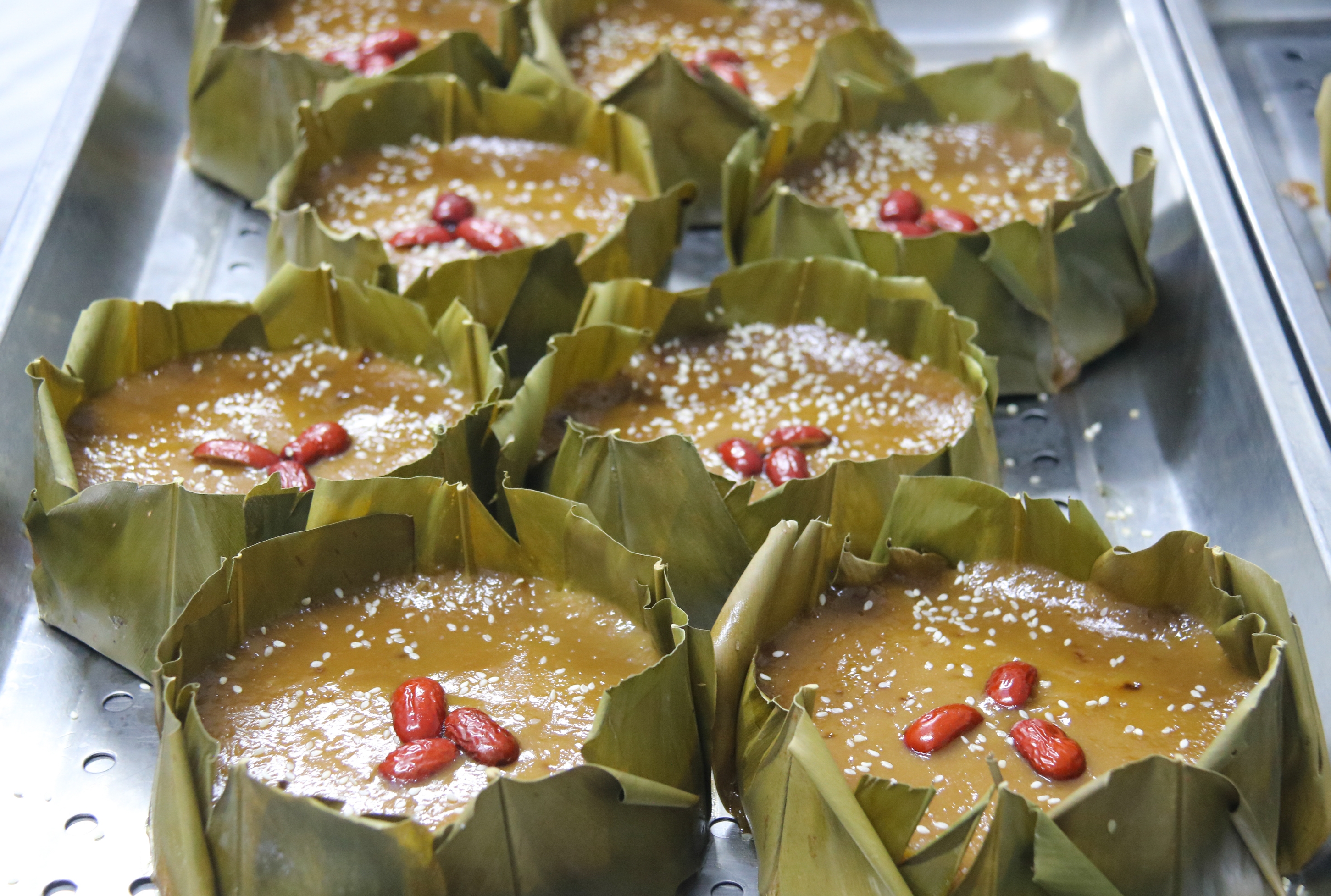在福鼎,秦屿糖粿是过年不可或缺的年货,承载着当地人对“年年高升”的美好期许,更是刻在每一个福鼎人心中的年味记忆。这道传统小吃的制作颇为讲究,选用上等糯米为原料,精准把控糯米与水、糖料的配比,经过浸米、打浆、揉粉等多道繁琐工序后,倒入铺有月桃叶的模具中高温蒸煮。出锅后,撒上洁白的白芝麻,点缀几颗鲜红的红枣,既勾勒出“雪花飘飘,红梅点点”的新春意境,也让糖粿的口感愈发丰富,软糯中带着清甜,香气绵长。