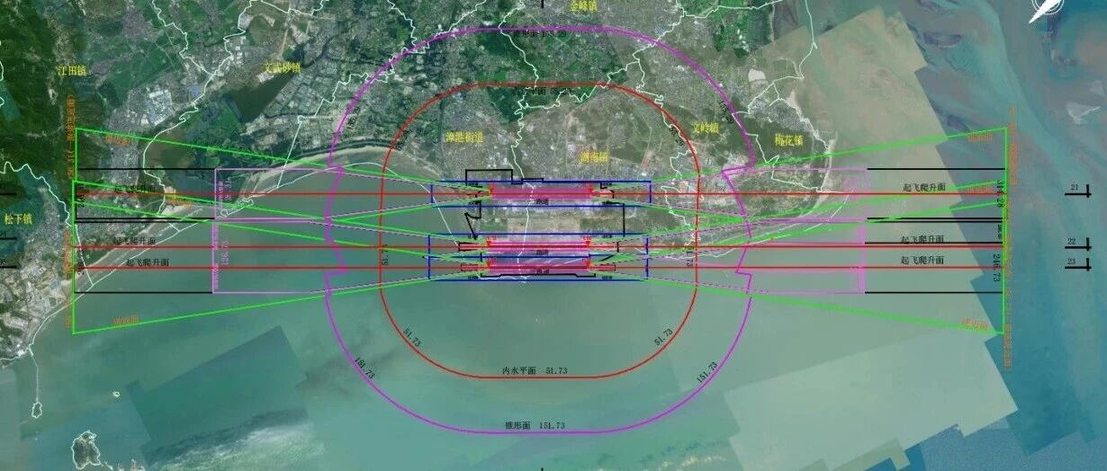 福州长乐国际机场净空保护区域是指以机场基准点为圆心、水平半径55公里的空间区域,分为净空巡视检查区域和净空关注区域。