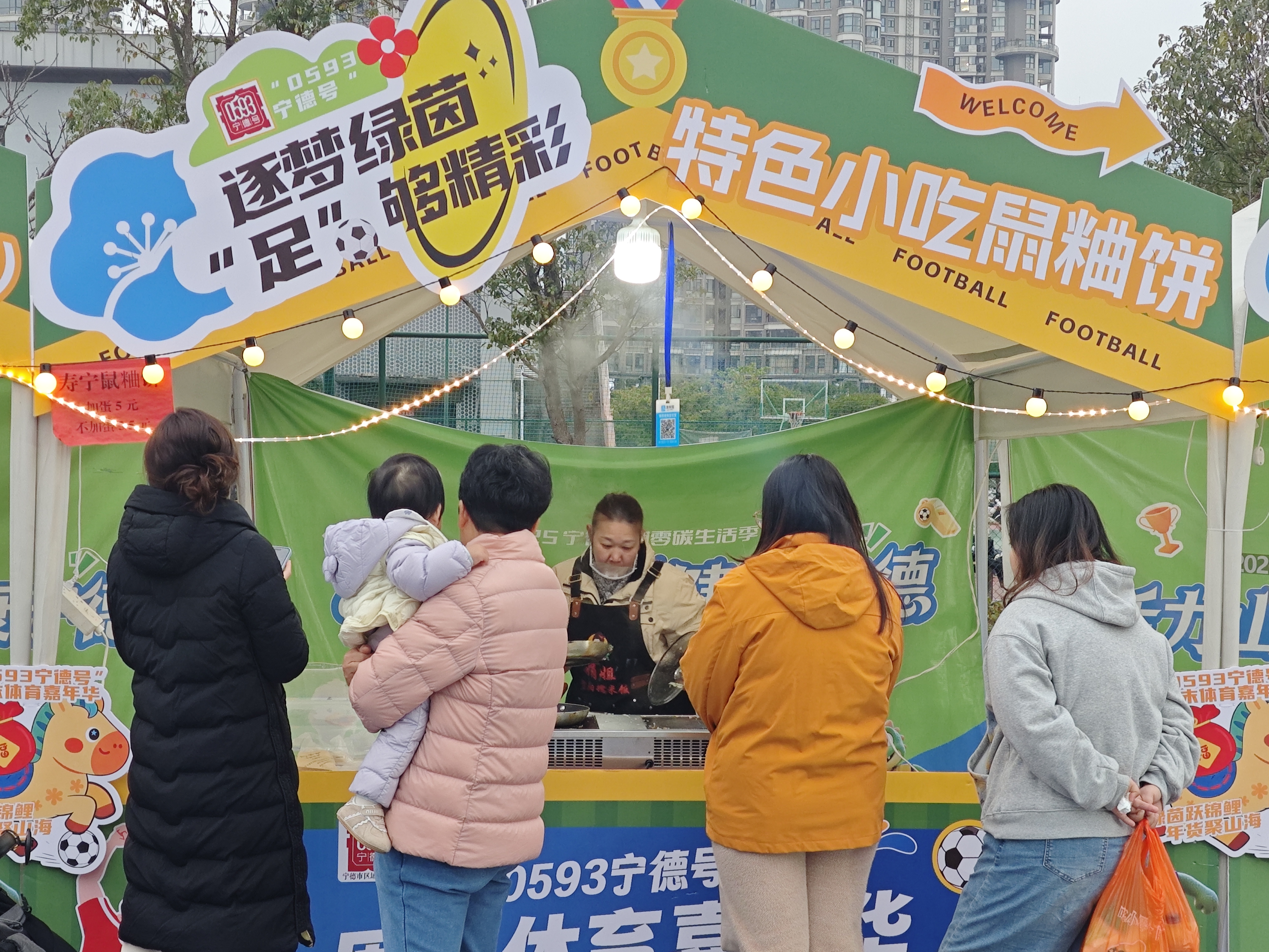 本次嘉年华由市委文明办、市体育局、市商务局及闽东日报社(宁德市文化传媒集团)联合主办,以“绿茵跃锦鲤 年货聚山海”为主题,设置约20个摊位,旨在以足球赛事为纽带,串联起体育竞技、年货购物与休闲娱乐三大板块,将赛场激情与新春喜庆氛围深度融合,进一步激活周末消费市场。