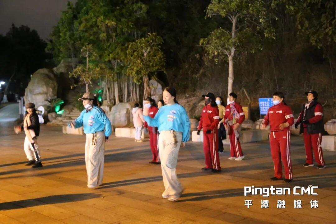 华灯初上,万宝公园热闹起来,开阔的广场成了夜间群众文化活动的聚集地。