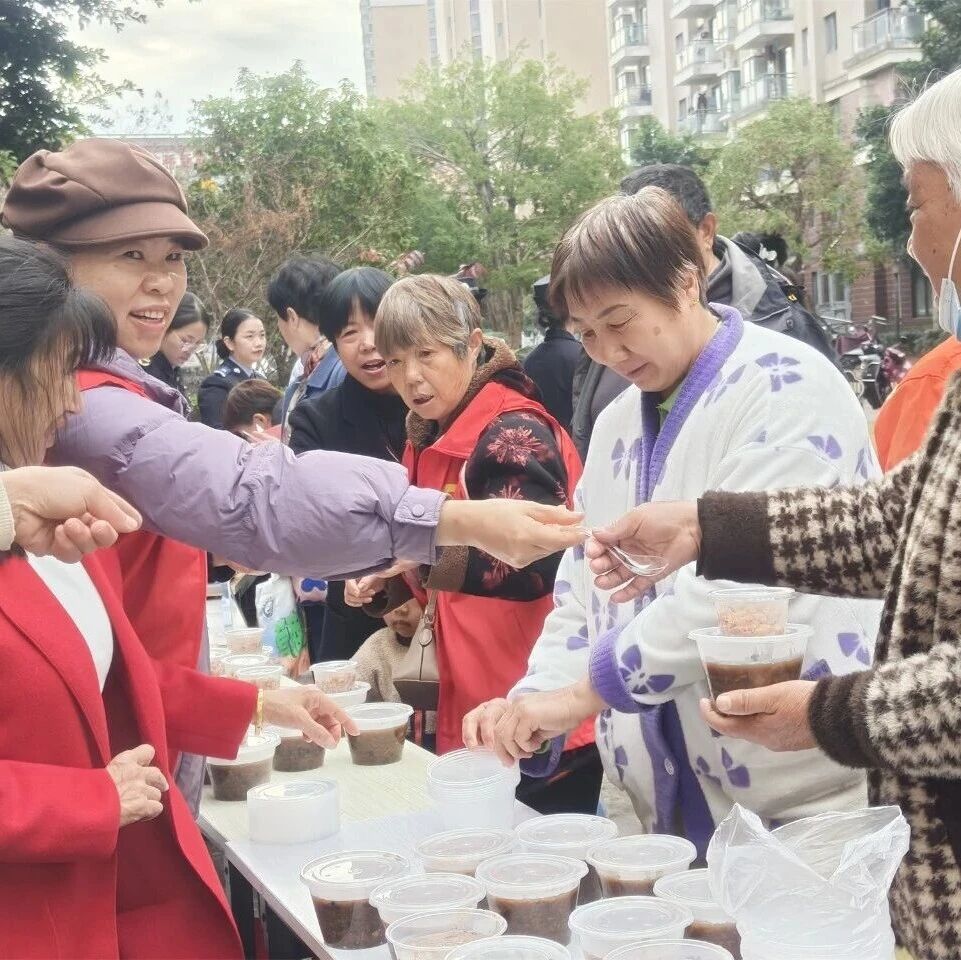 活动当天,志愿者们早早来到幸福佳园、星海时代、万和城等小区,布置场地、摆放物资,熬制腊八粥,忙碌却有条不紊。