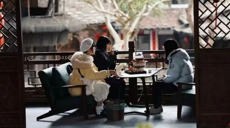 俏皮可爱的复古年画、二十四节气的灯笼、贴上柴扉的“门福”……这里的年味气息已经拉满!别忘了举起相机——陶壶蒸腾的热气,茶杯里晃动的金汤,树叶间隙漏下的光柱,还有您被暖阳吻热的笑脸。每一个角度都自成画卷,每一帧都是值得珍藏的慢时光。