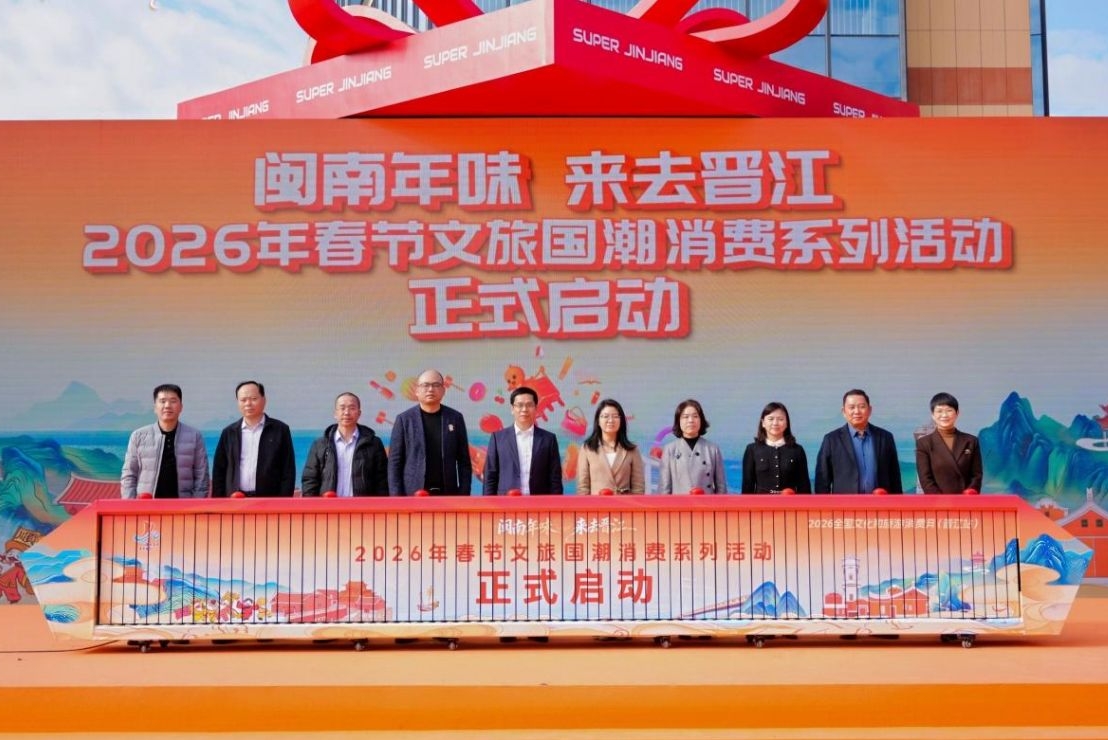 启动仪式全方位展现晋江的世遗风采、产业活力与年味风情。仪式现场亮点纷呈,多项重磅内容接连发布。晋江市2026年春节文体旅商融合促消费活动、市总工会新春职工工业旅游特色路线相继亮相,为群众春节出行消费提供多元选择;泉州晋江国际机场航线航班及“国货潮品·一齐飞”消费季活动推介,架起国货出海与文旅引流的桥梁;文旅消费金融惠民措施、“百万补贴”乘车优惠券包的发布,以实打实的福利激活消费潜力。