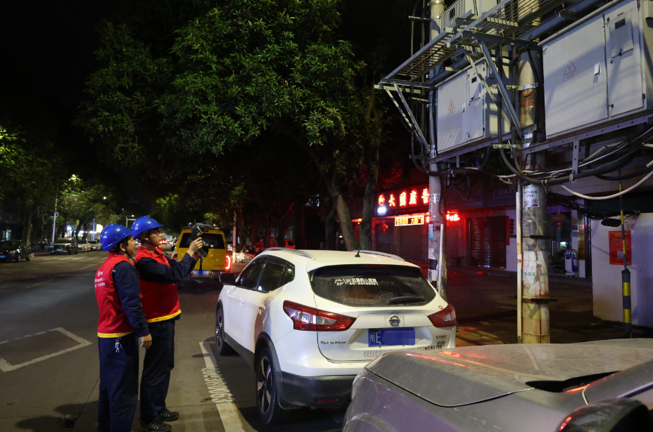 冬季气温持续走低,用电负荷上升,配网线路设备易出现发热、过载等隐患,而夜间用电高峰开展特巡是排查此类隐性故障的“黄金手段”。夜巡过程中,该公司服务队队员手持红外测温仪对线路的开关、刀闸连接点进行测温,详细记录数据,比对分析温度变化。
