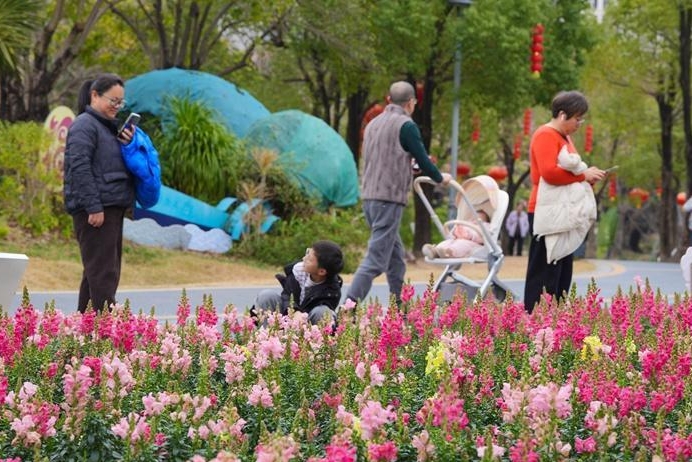 “过去这片花田种的都是波斯菊,今年我们特意换了品种,就是想给大家带来一些新鲜感!”公园养护方相关负责人告诉记者。除了颜值爆表的金鱼草,春节期间一串红、孔雀草、天门冬、海棠、矮牵牛、杜鹃、凤仙花、波斯菊等各色时令花卉将在该公园同步登场,让游客度过一个花香相伴的节日。