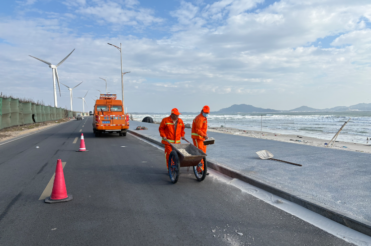 S503线环岛路乌礁湾路段沿着海岸线蜿蜒展开,海风带来的细沙会在夜间悄悄覆盖路面,尤其是风大的秋冬季节,更是“肆无忌惮”地堆积在路肩。“自从今年接养乌礁湾路段之后,我们每天都能边看海边扫路,工作更愉快了”,负责养护该路段的东山公路分中心康美班站方站长乐呵呵地说完,便推起斗车,稳稳接住养护人员铲子里的沙。只见路面已经被小型清扫车打扫过一遍,只剩边角处的沙堆需要人工清理,养护人员连扫带铲2个小时便将乌礁湾路段的细沙打扫干净,工作效率得到大幅提升。
