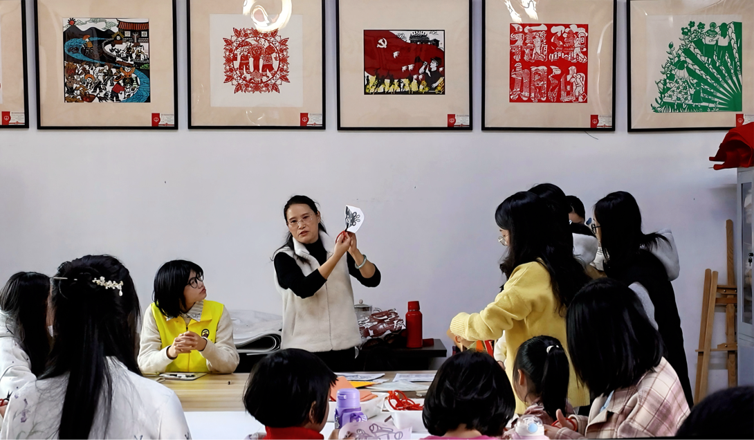 实践队师生体验剪纸技艺