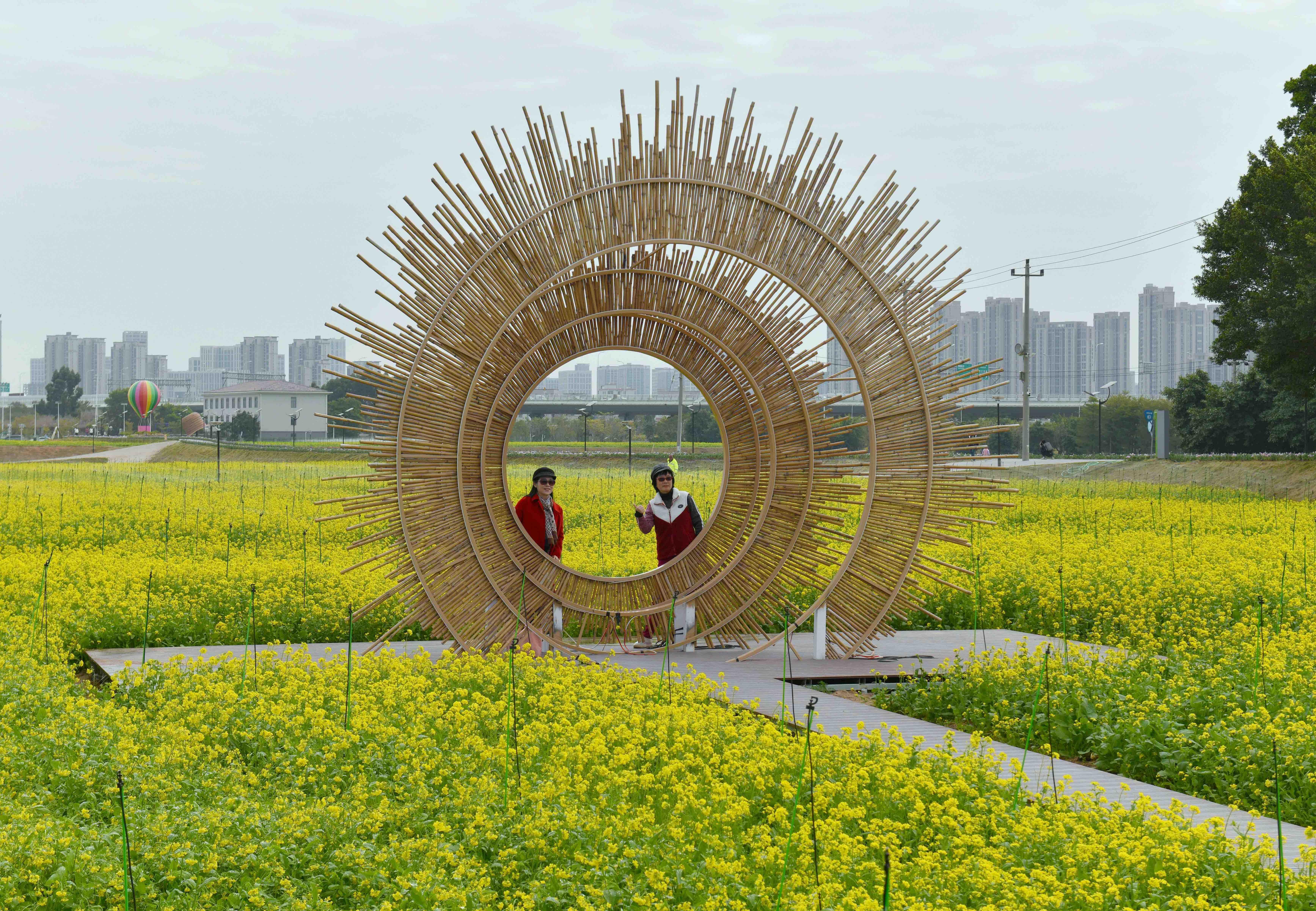 据了解,西岩山都市田园油菜花共分为两个地块,以甘蓝型品种为主,该品种喜冷凉气候,适宜生长温度为14℃—18℃,花色金黄、花瓣硕大密集,盛花期时极具视觉冲击力。为延长观赏期,管理方通过分段种植方式,让油菜花错开盛花期,实现整个二月都处于盛花期效果,特别是春节期间更是最佳赏花时段。此外,春节至元宵节期间,园方还将举办沉浸式游园等主题活动,进一步丰富游客假日游玩体验。
