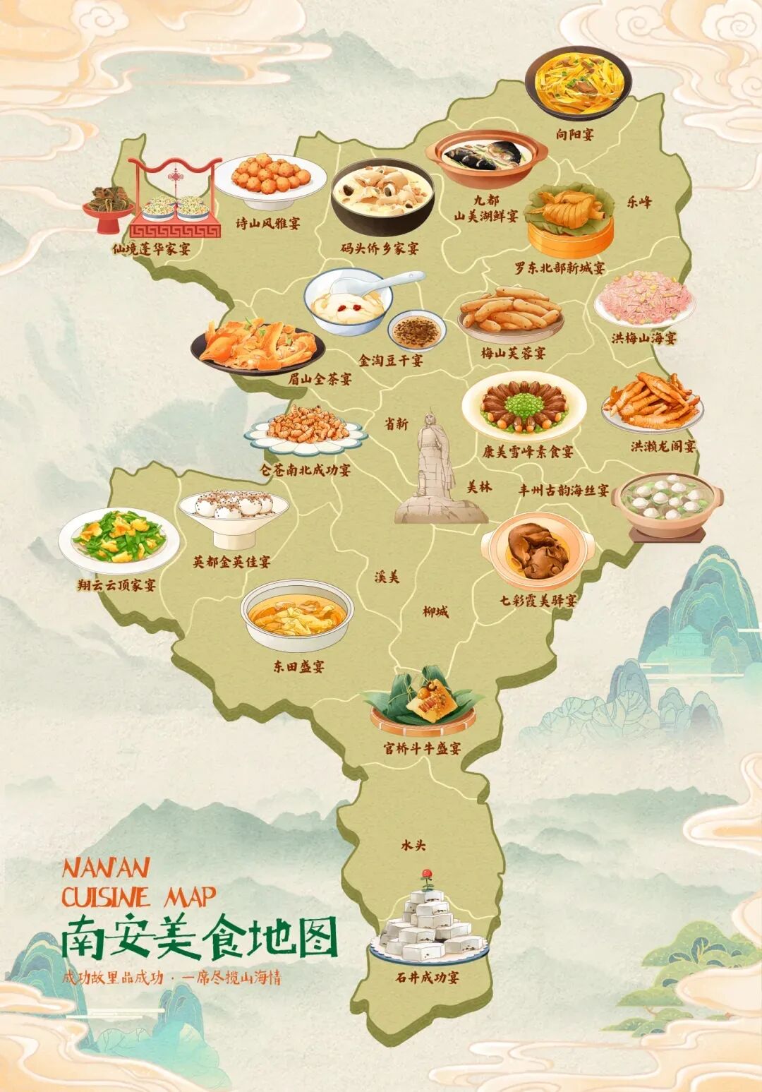 以洪梅镇餐饮食材春季订货招商会暨第三届美食品鉴活动为核心爆点,深度整合南安及闽南地区特色饮食资源。通过“古厝长街·洪梅山海宴”“成功家宴”等系列推介活动,集中推广南安“一镇一桌菜”“成功家宴”等美食品牌,联动各乡镇开展非遗美食展销与特色宴席品鉴,以美食带动消费升温、传递乡情年味。