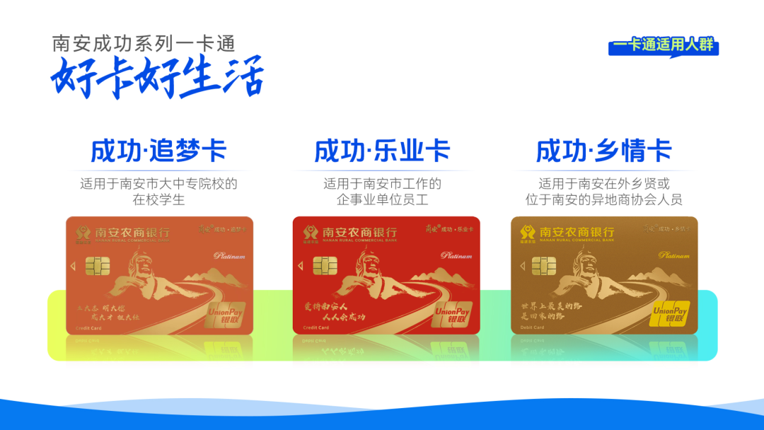 联合南安农商银行“成功一卡通”,在联盟商家(家装、商超、餐饮、酒店)推出消费满减优惠,覆盖全域消费场景。