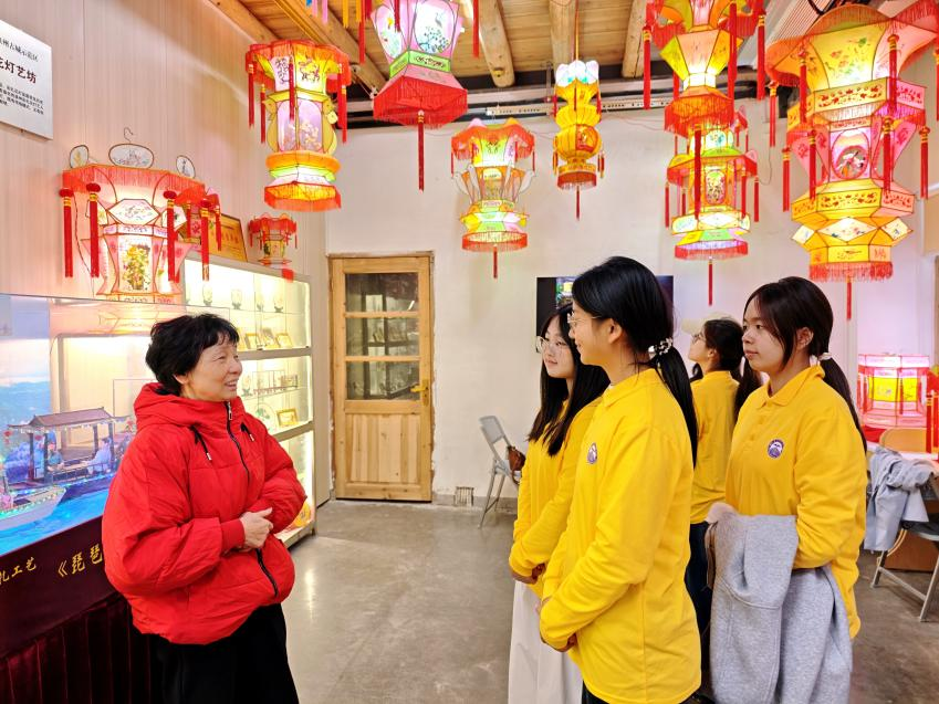 非遗传承人曹淑贞为实践队队员介绍泉州花灯