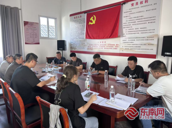 将乐县南口镇蛟湖村党支部第一书记张肇瑞主持村“两委”会。