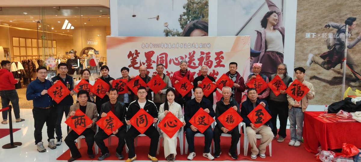海峡导报·新福建客户端2月4日讯(通讯员 吴玮冰 黄成贵 记者 王福敬)笔墨同心送福至,马到成功贺新岁。2月3日,南安市2026年新春两岸书法家送春联活动,在南安市中骏世界城内开启,来自南安和金门的10多名书法家挥毫送福。
