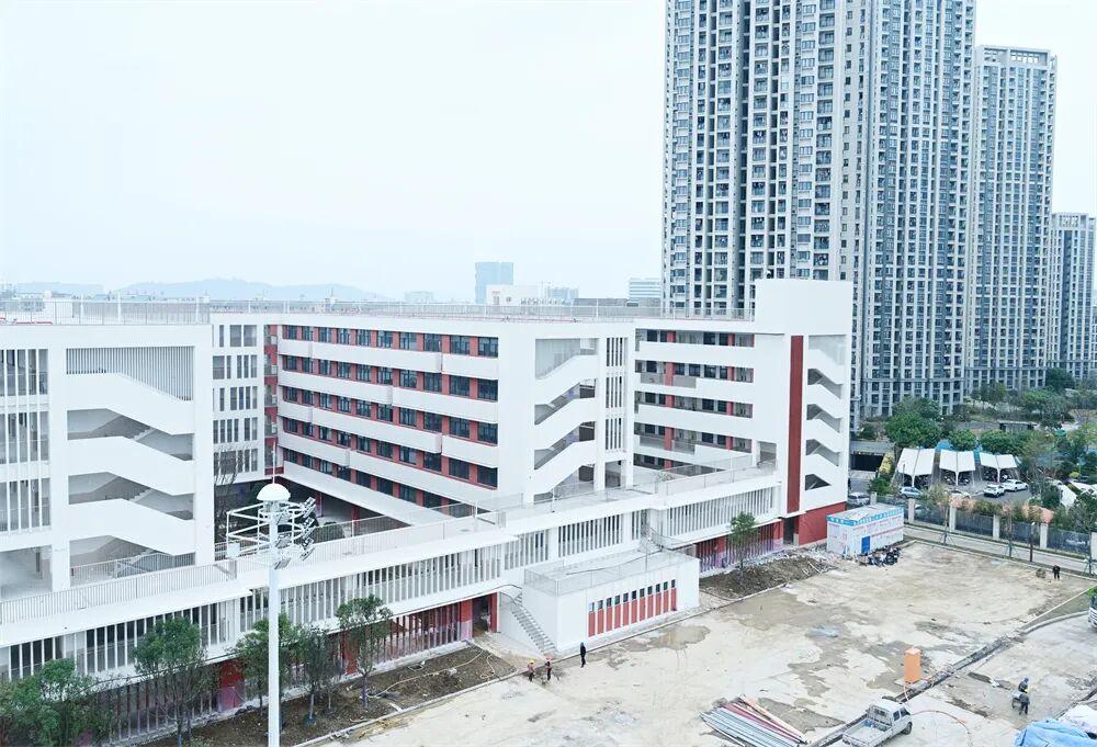 “目前,项目主要进行附属工程施工,其中绿化种植已完成90%,操场塑胶跑道等正加紧施工,预计今年3月可全部竣工验收。”项目现场管理人员林生介绍,校园布局科学、设施完备,规划地下车位121个,并配建多媒体教室、舞蹈室、阶梯教室等功能空间,可满足学生体育训练、文体活动与个性化、多元化发展需求。