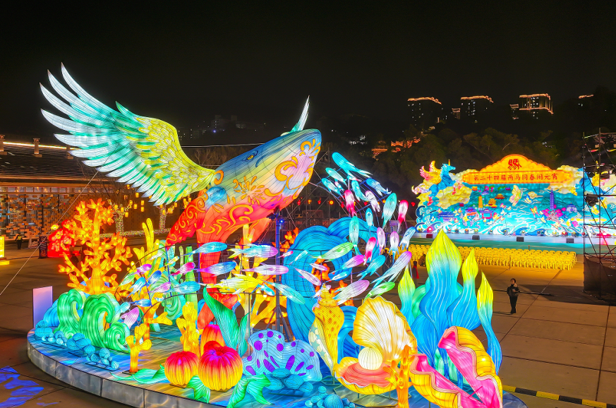 今年船政迎来创办160周年,“两马同春闹元宵”活动首次落地船政文化园区。灯会以“灯耀船政,马跃沧海”为主题,占地超5万平方米,分“龙马精神”“灯耀船政”“江海风物”“星辰大海”“新春纳福”五大篇章,生动呈现两马民俗文化、船政文化、闽台文化和福建海洋文化。