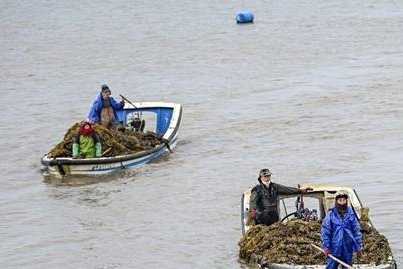 海上的渔船装满了海带