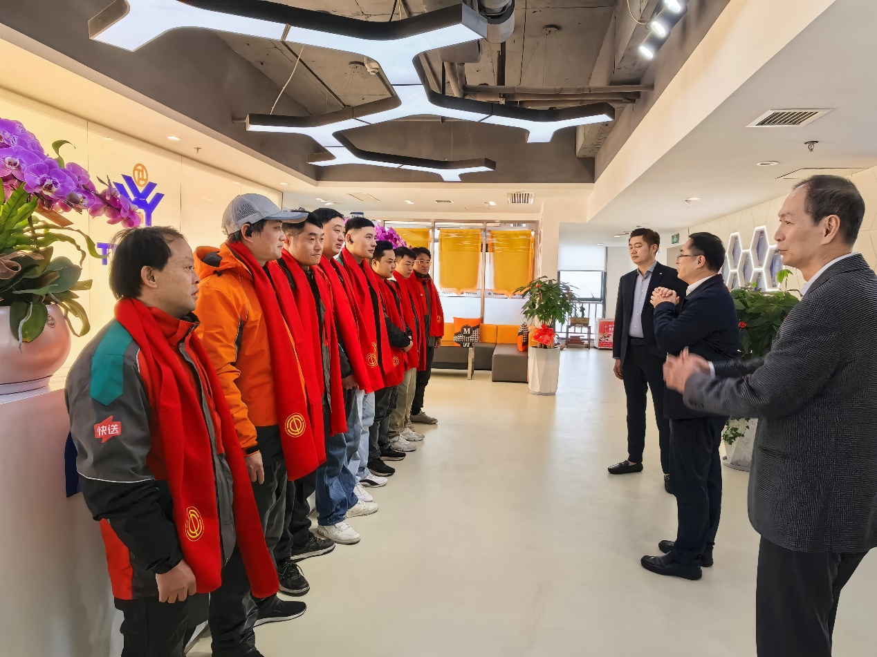临行前,慰问团与骑手、司机们共同合影,并送上诚挚的新春祝福,叮嘱大家工作中务必注意安全,劳逸结合。慰问团寄语广大新就业形态劳动者,希望大家继续发扬爱岗敬业、互助友爱的精神,在平凡的岗位上创造价值,在服务奉献中融入城市发展。