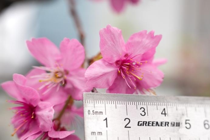 新培育的紫粉色品种福建山樱花,花朵直径约4厘米,比传统品种大一倍。记者 包华 摄