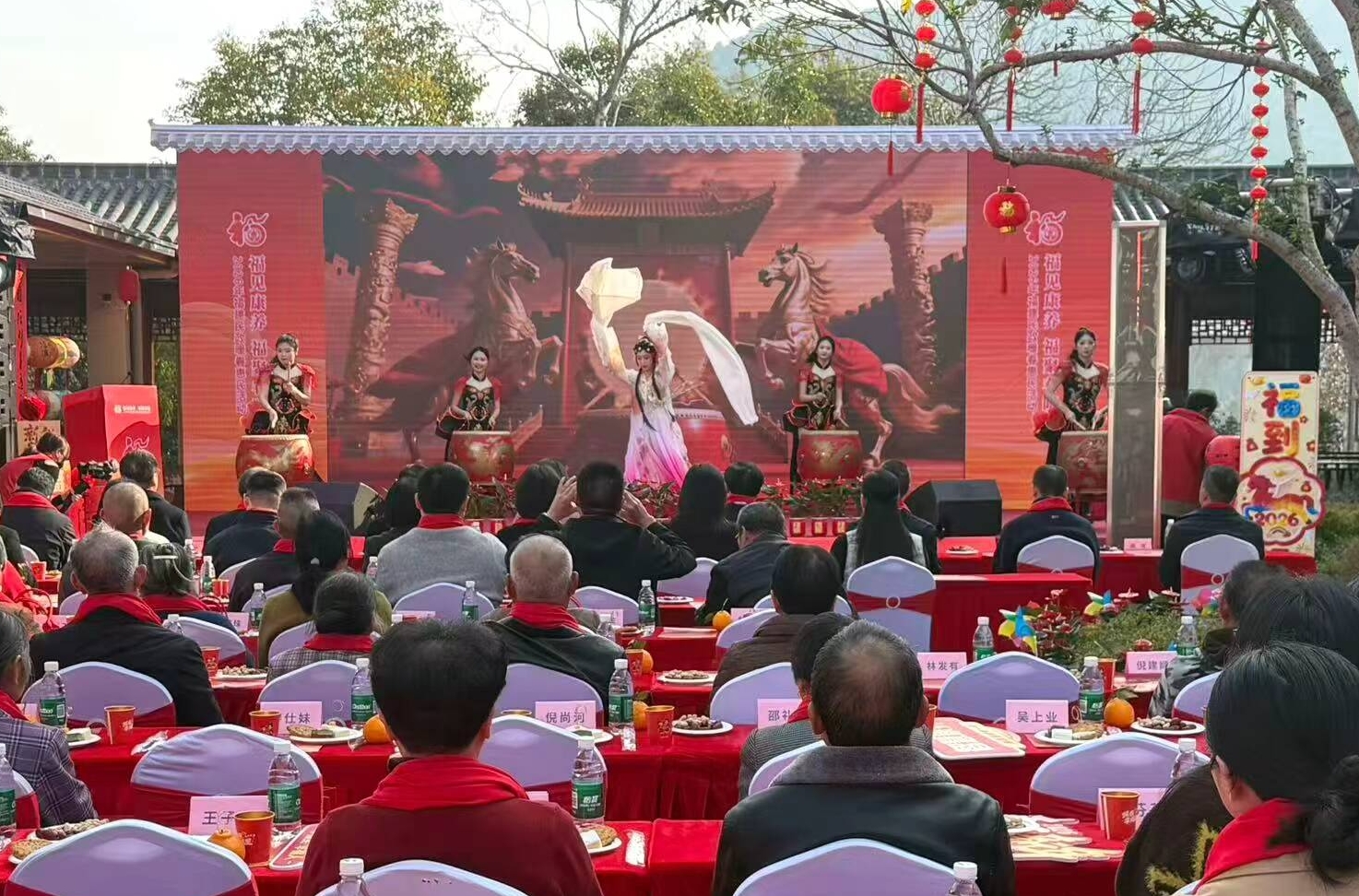 文化润心守乡愁,非遗赋能添活力。期间,原创主题歌曲《幸福里幸福人》唱出乡土温情与养老期盼;智能机器人太极表演刚柔并济,演绎科技与传统养生的创新融合;政和非遗《新娘茶》展演韵味悠长,传递千年茶韵与乡土祝福;舞蹈《福女簪武》英姿飒爽,彰显巾帼风采;国家级非遗四平戏选段《蟠桃会》唱腔悠扬,奏响文化传承的古老回响。机器人书法家挥毫送“福”环节将氛围推向高潮,一幅幅“福”字串联起传统民俗与智能科技,让文化下乡不再是单向度的节目输送,而是激活乡村尊老文化基因、延续乡土文脉的生动实践。