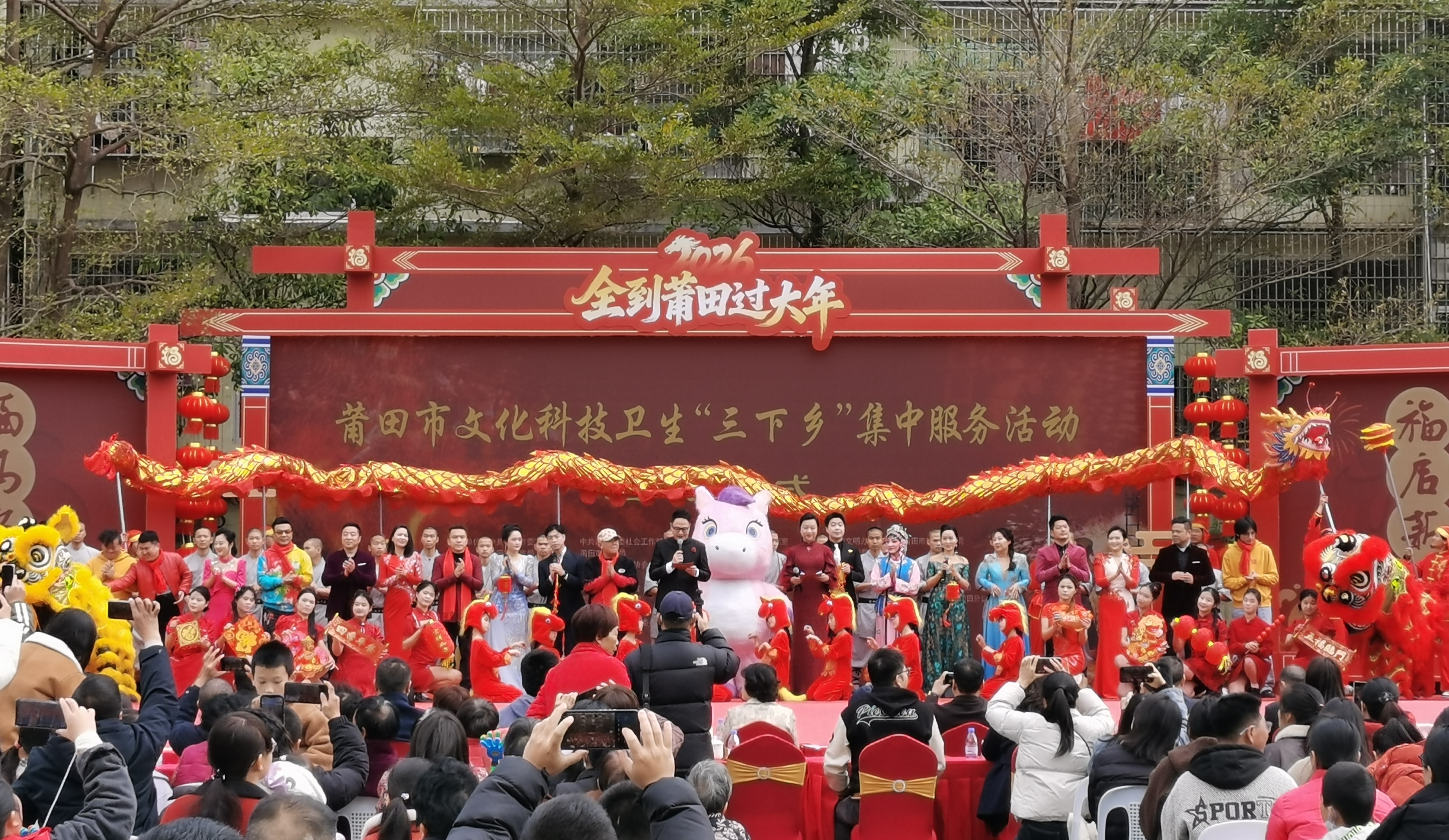 福建日报·新福建客户端2月7日讯(记者 陈盛钟)7日上午,城厢区华亭镇第一中心小学操场上人潮涌动,热闹非凡,2026“全到莆田过大年”莆田市文化科技卫生“三下乡”集中服务活动在此热闹启幕,将文艺演出、健康义诊、书写春联、科普宣传等丰盛的“惠民大餐”送至群众家门口,让政策温度、服务力度直抵民心。