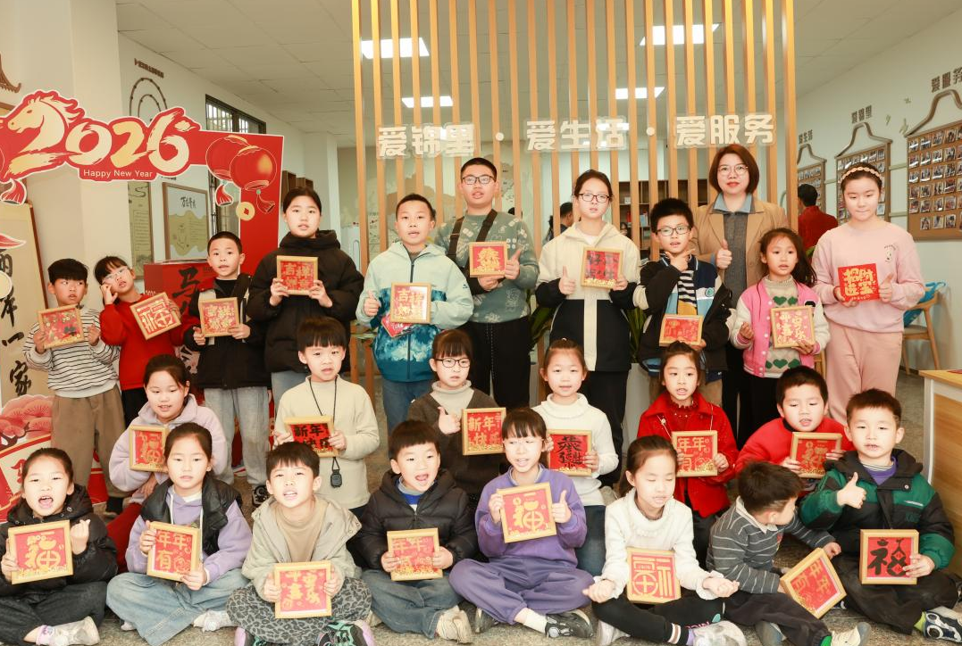 在随后的民俗体验环节,现场热闹起来。在“同心拓福”手工活动中,亲子家庭协作拓印福字;书法家现场挥毫送春联,传递笔墨祝福;孩子们踊跃参与“马上有福”猜词游戏,现场洋溢着一片欢乐祥和的节日氛围。