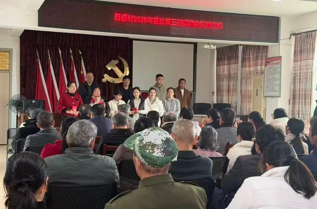 此次三孩生育奖励金发放,是西梧村积极落实国家优化生育政策、建设生育友好型乡村的具体实践。2024年,为提高村民生育积极性,西梧村出台生育奖励措施,对户籍在西梧村且符合国家生育政策的三孩家庭给予每人2400元奖励,并为新生儿购买医疗保险,切实把育儿成本降下来。吴志雄表示,下一步西梧村将继续深化婚育文化建设,不断完善奖励政策和保障措施,聚焦群众生育、养育需求,加大生育政策宣传力度,同时持续做强特色产业,推动就业增收,探索婚育文化建设与乡村振兴深度融合的新路径。