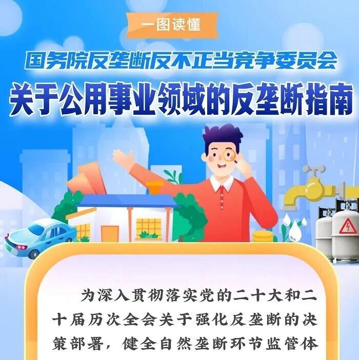 记者2月11日从市场监管总局获悉,国务院反垄断反不正当竞争委员会近日印发施行《关于公用事业领域的反垄断指南》,旨在预防和制止公用事业领域垄断行为,维护市场公平竞争,保护消费者利益和社会公共利益。
