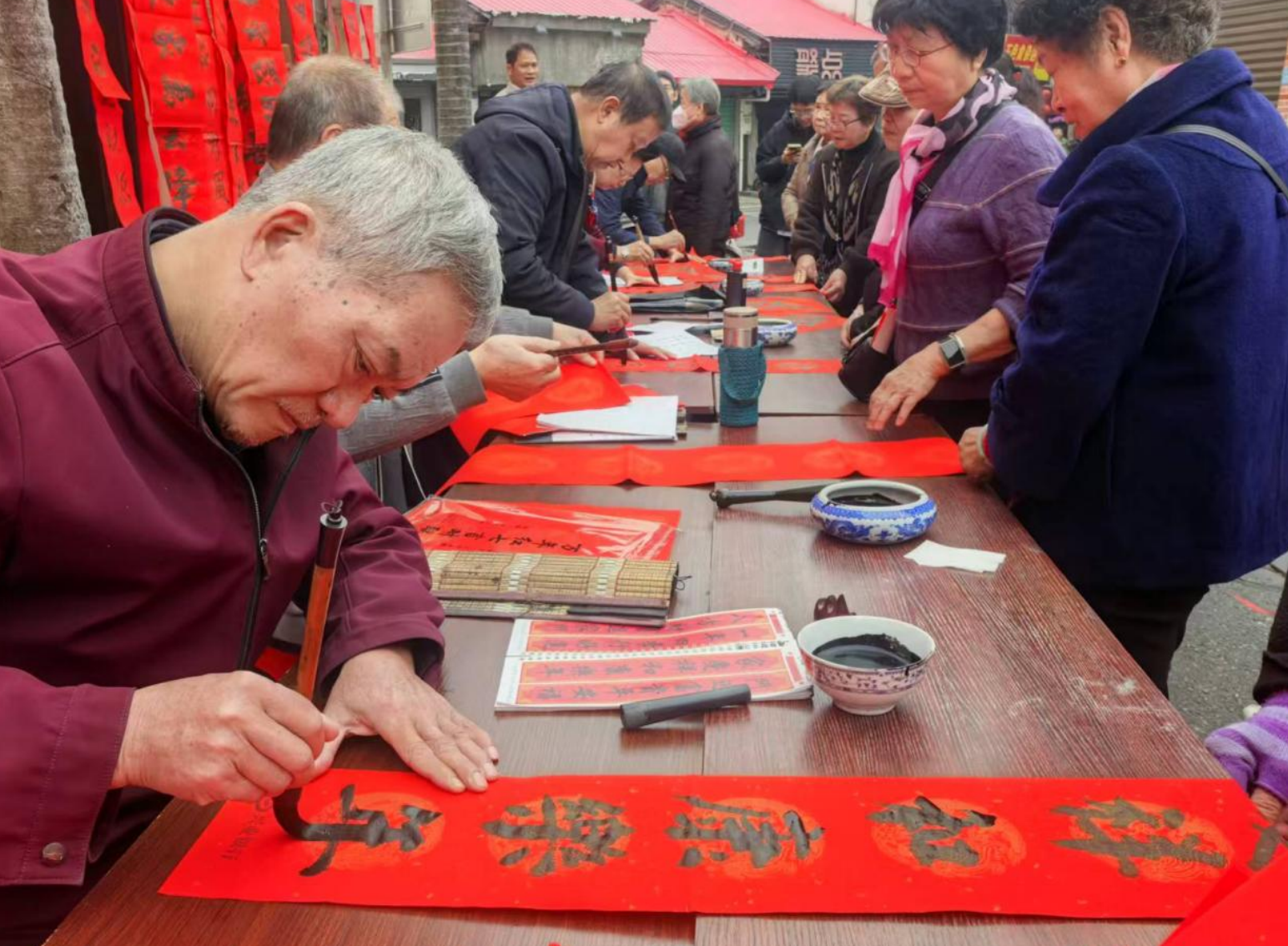 福建日报-新福建客户端2月12日讯(通讯员 蔡再蓉)新春将至,年味渐浓,漳州市老干部活动中心组织30余名市直离退休老同志志愿者,深入社区、乡村、银行等地开展“银晖送福”义写春联活动5场,共送出春联和“福”字1000余幅,为群众送上新春祝福。
